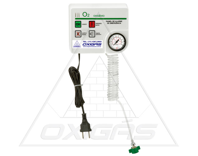 Os painéis de alarme ão instalados nas redes de gases medicinais com o objetivo de alertar quando os níveis de abastecimento estiverem baixos, através do monitoramento da pressão da rede. Fabricado com componentes de alta durabilidade, possui sistema de alarme audiovisual que é acionado quando a pressão atinge níveis inferiores ao da calibração de fábrica. É composto de caixa em material termoplástico de alta resistência com pintura eletrostática na cor branca com identificação do gás impressa e manômetro pré-calibrado para acionamento em pressão de rede predeterminada de acordo com o tipo de gás. Acompanha extensão espiralada com conector.